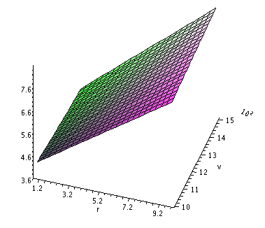 Mij verbaast het vooral dat de drempelwaarde m op deze manier gebruikt wordt. Je zou willen dat voor films waarbij het aantal stemmen (v) lager is dan m, er iets geks uit de formule komt (iets negatiefs of heel kleins). Maar dat is helemaal niet het geval, zoals dit eenvoudige plaatje (waarbij het aantal stemmen loopt van 1000 tot 1500) laat zien.
